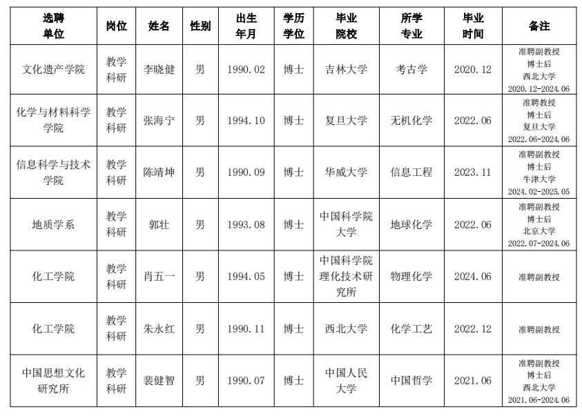经用人单位推荐,人力资源部审查,学校教学督导及院系相关专家考核,学校教师高级职务特别评审,星空app官网拟确定下列人员来校工作,聘任方式为事业编特别选聘。本着公平、公正、公开的原则,现将本次拟选聘人员基本情况公示如下:
