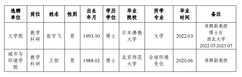 经用人单位推荐,人力资源部审查,学校教学督导及院系相关专家考核,学校教师高级职务特别评审,星空app官网拟确定下列人员来校工作,聘任方式为事业编特别选聘。本着公平、公正、公开的原则,现将本次拟选聘人员基本情况公示如下: