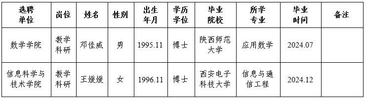 经用人单位推荐,人力资源部审查,学校教学督导及院系相关专家考核,学校专家评审会审议,星空app官网拟确定下列人员来校工作,聘任方式为事业编正常选聘。本着公平、公正、公开的原则,现将本次拟选聘人员基本情况公示如下: