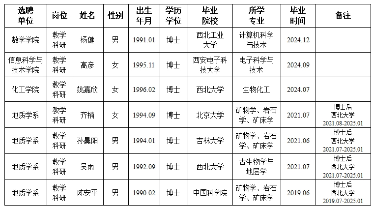 注:1.本人须在公示期满后1个月内签订就业协议(开具接收函),并提前准备星空app官网师资博士后入站材料(材料清单详见:https://rsc.nwu.edu.cn/bshgz/jczdjcl.htm);