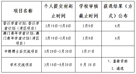 (四)设站单位须对香江学者计划、香江学者计划(湾区项目)、澳门青年学者计划、澳门青年学者计划(湾区项目)和中德博士后交流项目获选人员按照在站博士后研究人员进行管理,在上述项目结束前,不得办理出站手续。