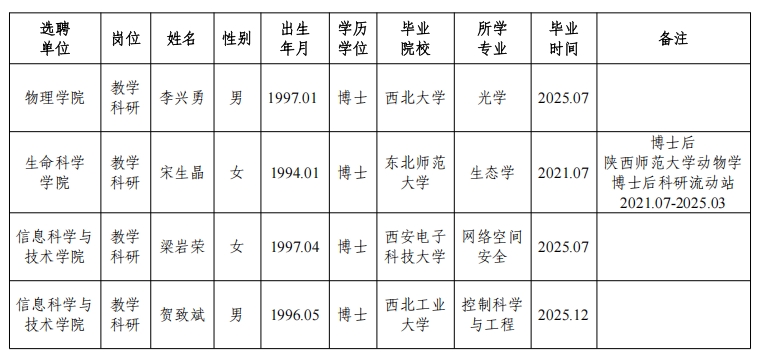 经资格审查,用人单位考查,学校专家评审会审议,星空app官网拟确定下列人员来校工作,聘任方式为事业编正常选聘。本着公平、公正、公开的原则,现将本次拟选聘人员基本情况公示如下: