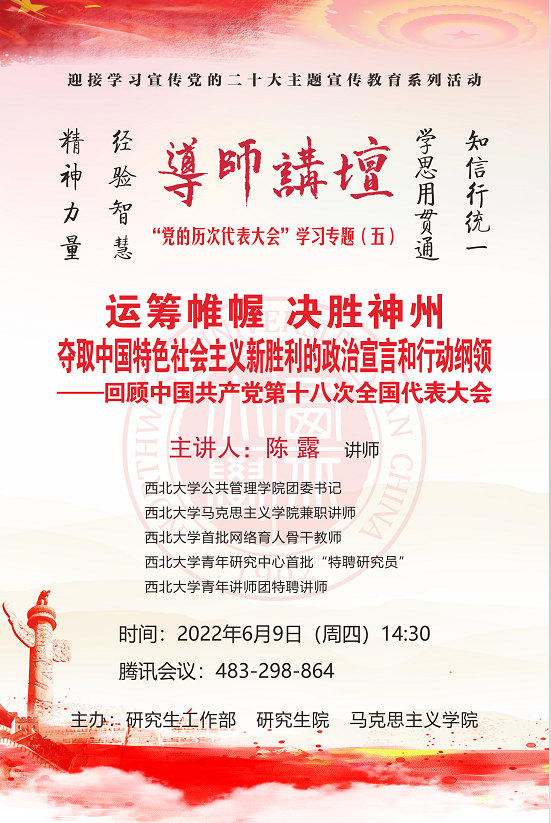 导师讲坛“党的历次代表大会”学习专题(五):运筹帷幄、决胜神州 夺取中国特色社会主义新胜利的政治宣言和行动纲领——回顾中国共产党第十八次全国代表大会