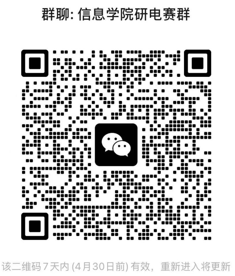 附:请参赛同学扫描以下二维码加入星空app官网研究生电子设计竞赛群(信息学院研电赛群)。
