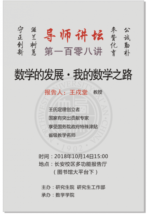 导师讲坛第108讲:数学的发展·我的数学之路
