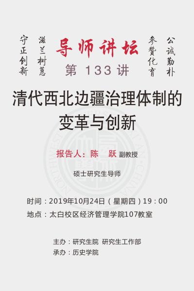 导师讲坛第133讲:清代西北边疆治理体制的变革与创新