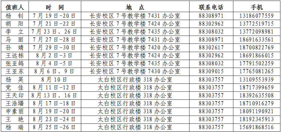 科技处2021年暑假值班安排