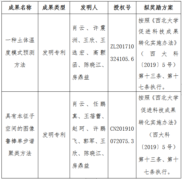 按照《星空app官网促进科技成果转化实施办法》(西大科〔2019〕5号)相关规定,拟对星空app官网信息科学与技术学院肖云教授作为成果负责人的2项发明专利权实施普通许可,现将相关信息公示如下: