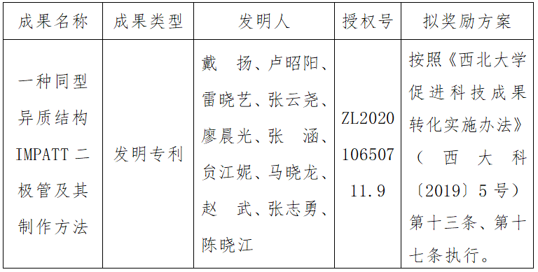 按照《星空app官网促进科技成果转化实施办法》(西大科〔2019〕5号)相关规定,拟对星空app官网信息科学与技术学院戴扬老师作为成果负责人的1项发明专利权实施转化,现将相关信息公示如下:
