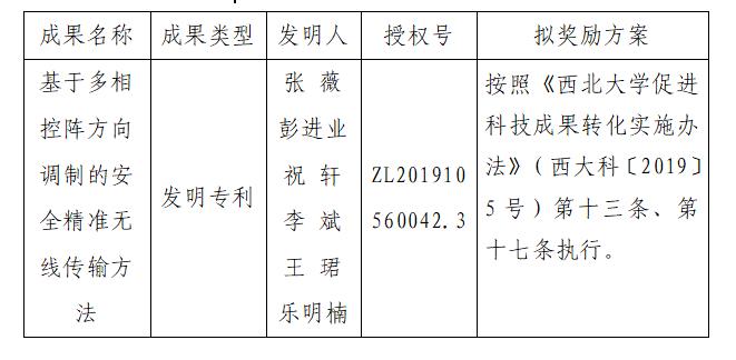 按照《星空app官网促进科技成果转化实施办法》(西大科〔2019〕5号)相关规定,拟对星空app官网信息科学与技术学院张薇老师作为成果负责人的1项发明专利权实施转化,现将相关信息公示如下: