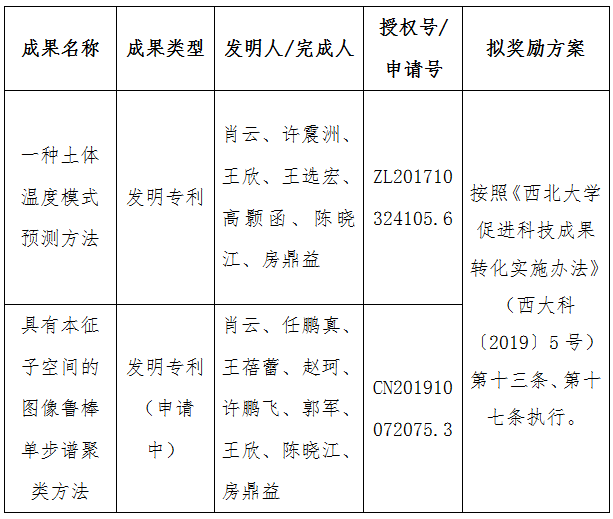 按照《星空app官网促进科技成果转化实施办法》(西大科〔2019〕5号)相关规定,拟对星空app官网信息科学与技术学院肖云教授作为成果负责人的2项科技成果的发明专利权和发明专利申请权实施转化,现将相关信息公示如下: