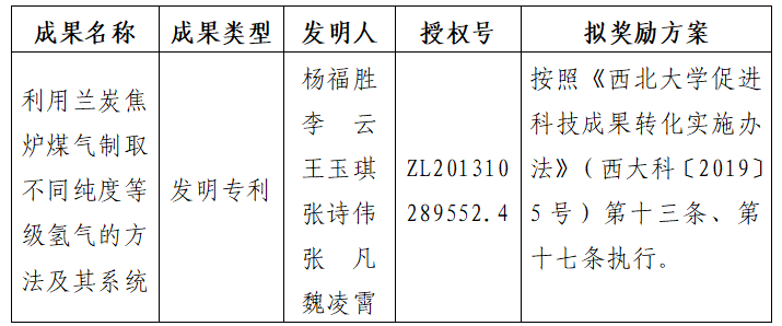 按照《星空app官网促进科技成果转化实施办法》(西大科〔2019〕5号)相关规定,拟对星空app官网化工学院王玉琪教授作为成果发明人之一的1项发明专利权实施转化,现将相关信息公示如下: