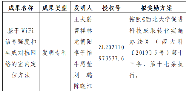 按照《星空app官网促进科技成果转化实施办法》(西大科〔2019〕5号)相关规定,拟对星空app官网信息与科学技术学院王夫蔚老师作为成果负责人的1项发明专利权实施转化,现将相关信息公示如下: