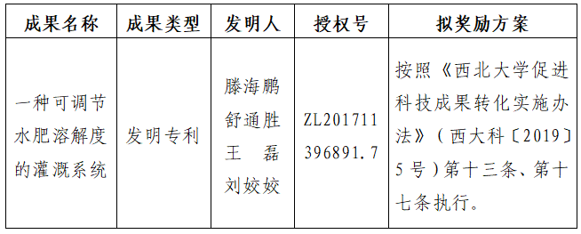 按照《星空app官网促进科技成果转化实施办法》(西大科〔2019〕5号)相关规定,拟对星空app官网化工学院滕海鹏副教授作为成果负责人的1件发明专利权实施转化,现将相关信息公示如下: