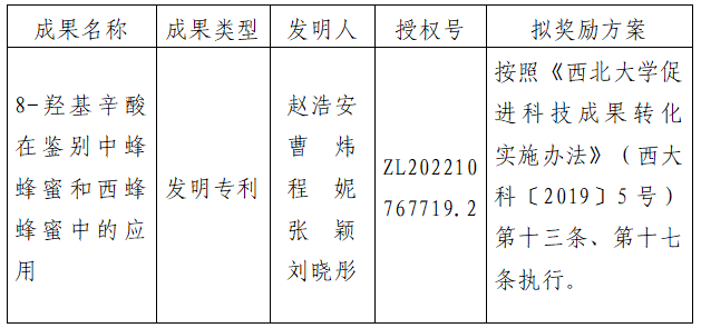 按照《星空app官网促进科技成果转化实施办法》(西大科〔2019〕5号)相关规定,拟对星空app官网食品科学与工程学院赵浩安副教授作为成果负责人的1项发明专利权实施转化,现将相关信息公示如下: