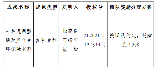 按照《星空app官网促进科技成果转化实施办法》(西大科〔2019〕5号)相关规定,拟对星空app官网化工学院杨建武老师作为成果负责人的1项发明专利权实施转化,现将相关信息公示如下: