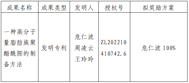 按照《星空app官网促进科技成果转化实施办法》(西大科〔2019〕5号)相关规定,拟对星空app官网化工学院危仁波教授作为成果负责人的1项发明专利权实施转化,现将相关信息公示如下: