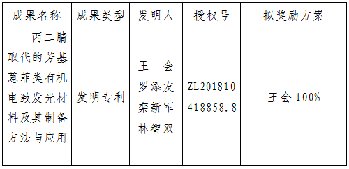 附件:拟转让成果信息及奖励方案
