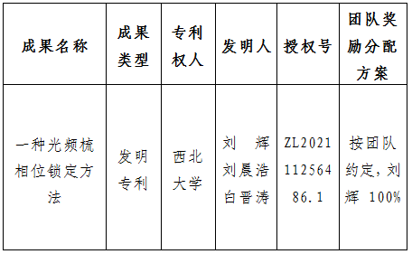 按照《星空app官网促进科技成果转化实施办法》(西大科〔2019〕5号)相关规定,拟对星空app官网光子学与光子技术研究所刘辉副教授作为成果负责人的1项发明专利权实施转化,现将相关信息公示如下: