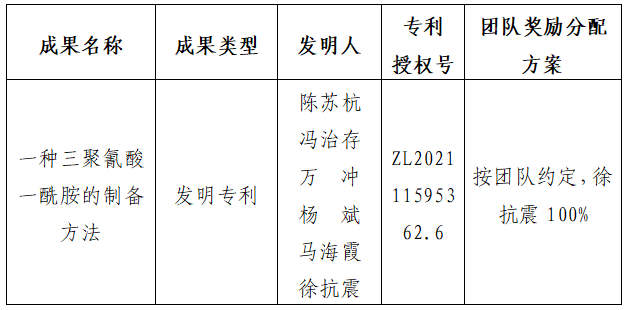 按照《星空app官网促进科技成果转化实施办法》(西大科〔2019〕5号)相关规定,拟对星空app官网化工学院徐抗震教授作为成果负责人的1项发明专利实施转化,现将相关信息公示如下: