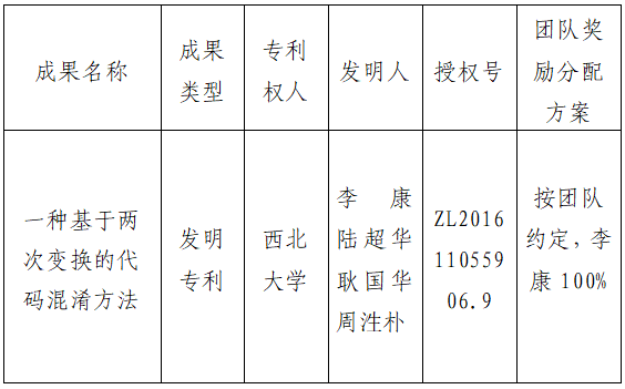 按照《星空app官网促进科技成果转化实施办法》(西大科〔2019〕5号)相关规定,拟对星空app官网计算机学院李康教授作为成果负责人的1项发明专利权实施转化,现将相关信息公示如下: