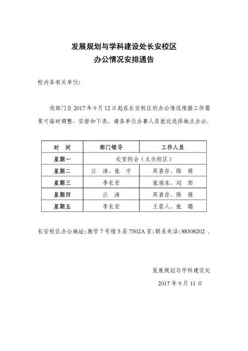 发展规划与学科建设处长安校区办公情况安排通告
