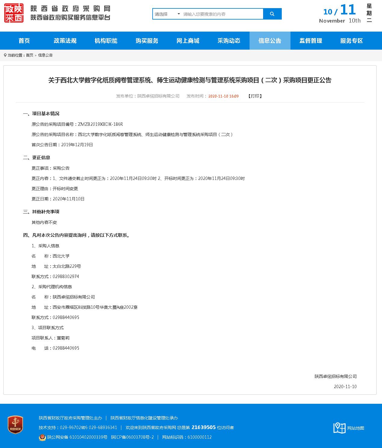 星空app官网数字化纸质阅卷管理系统、师生运动健康检测与管理系统采购项目(二次)采购项目更正公告