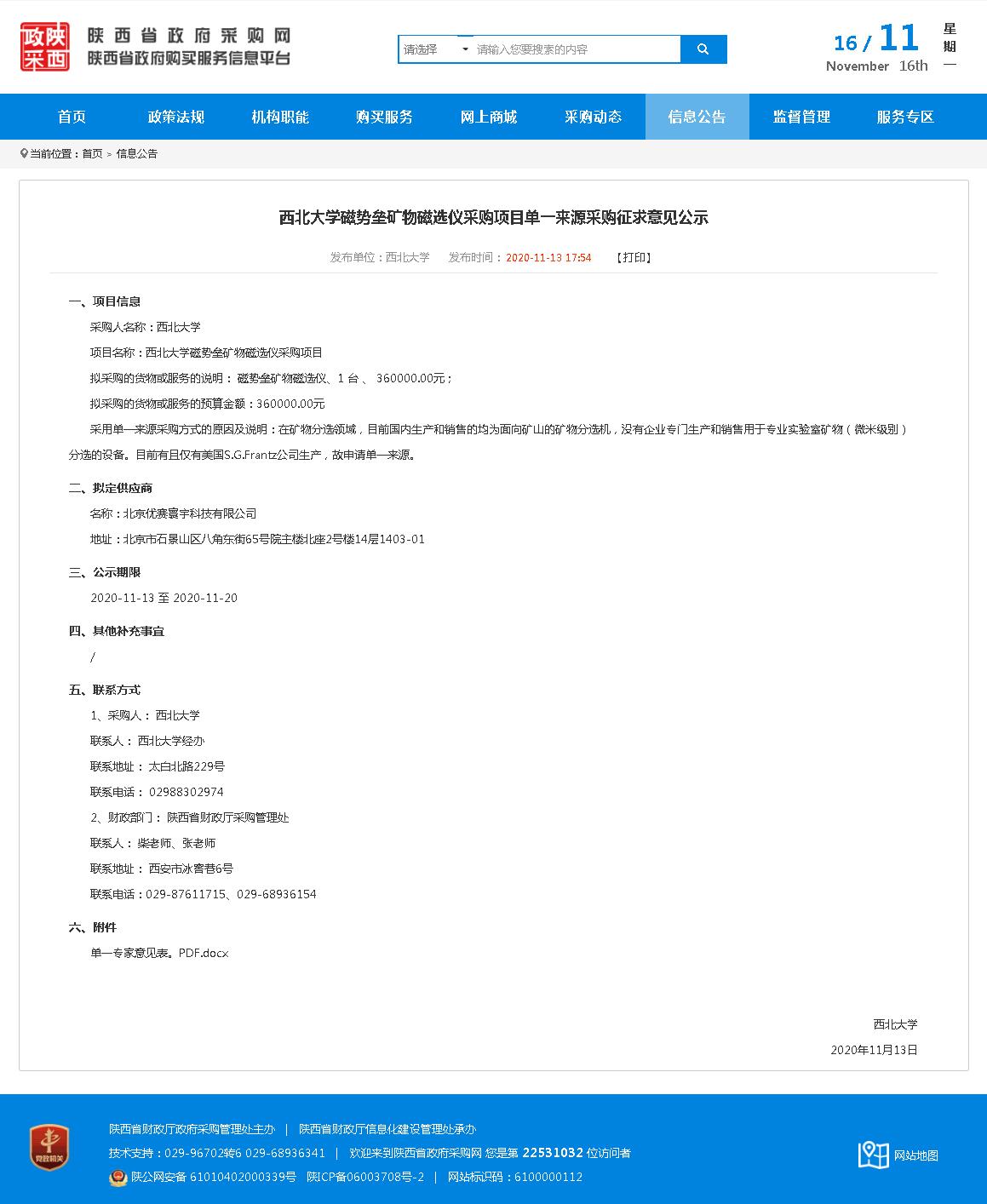 星空app官网磁势垒矿物磁选仪采购项目单一来源采购征求意见公示