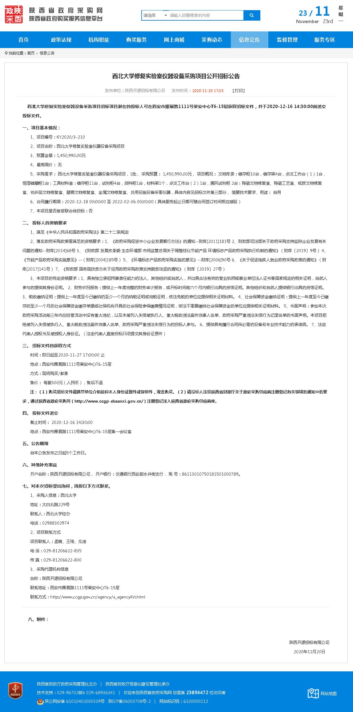星空app官网修复实验室仪器设备采购项目公开招标公告