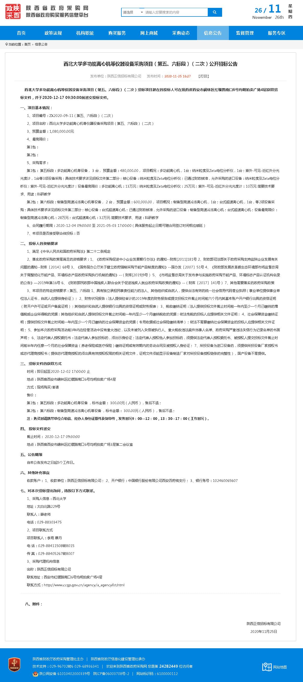 星空app官网多功能离心机等仪器设备采购项目(第五、六标段)(二次)公开招标公告