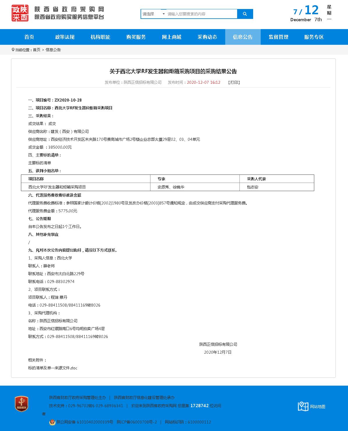 星空app官网RF发生器和炬箱采购项目的采购结果公告