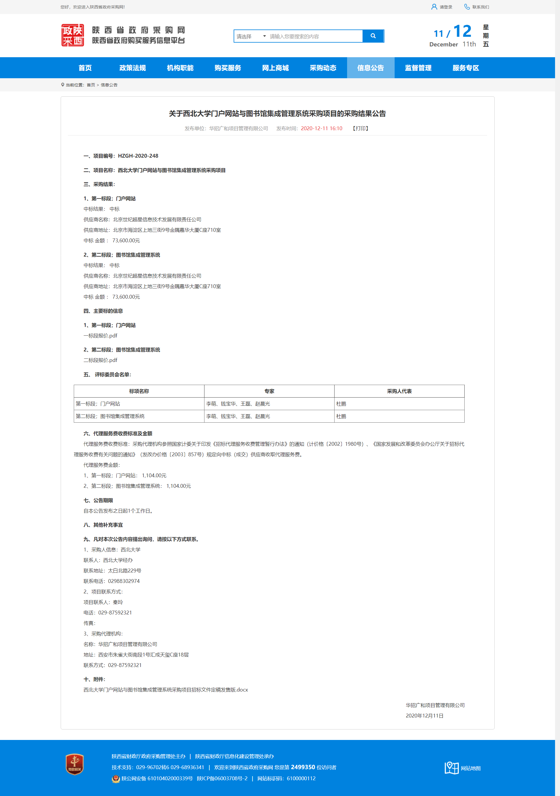 关于星空app官网门户网站与图书馆集成管理系统采购项目的采购结果公告 作者: 编辑:薛利娟 时间:2020-12-11 原公告地址:http://www.ccgp-shaanxi.gov.cn/notice/noticeDetail.do?noticeguid=8a85be3275d5d5c2017650d7c2df14aa