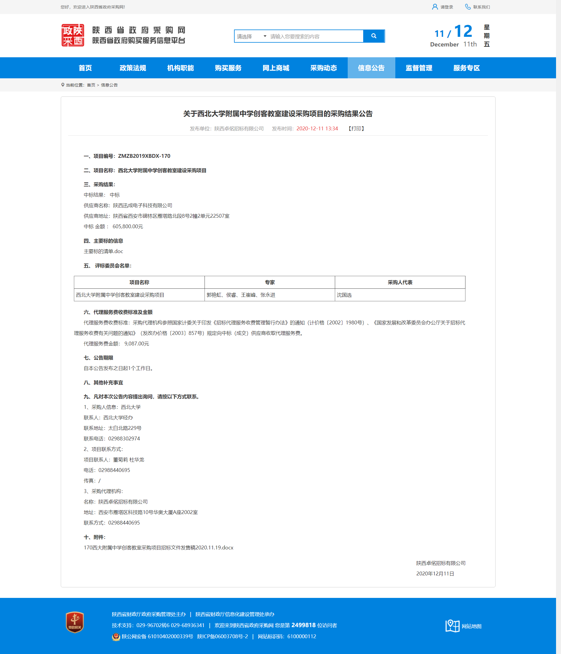 关于星空app官网附属中学创客教室建设采购项目的采购结果公告 作者: 编辑:薛利娟 时间:2020-12-11 原公告地址:http://ccgp-shaanxi.gov.cn/notice/noticeDetail.do?noticeguid=8a85be3275d5d5c2017650494fb1060f
