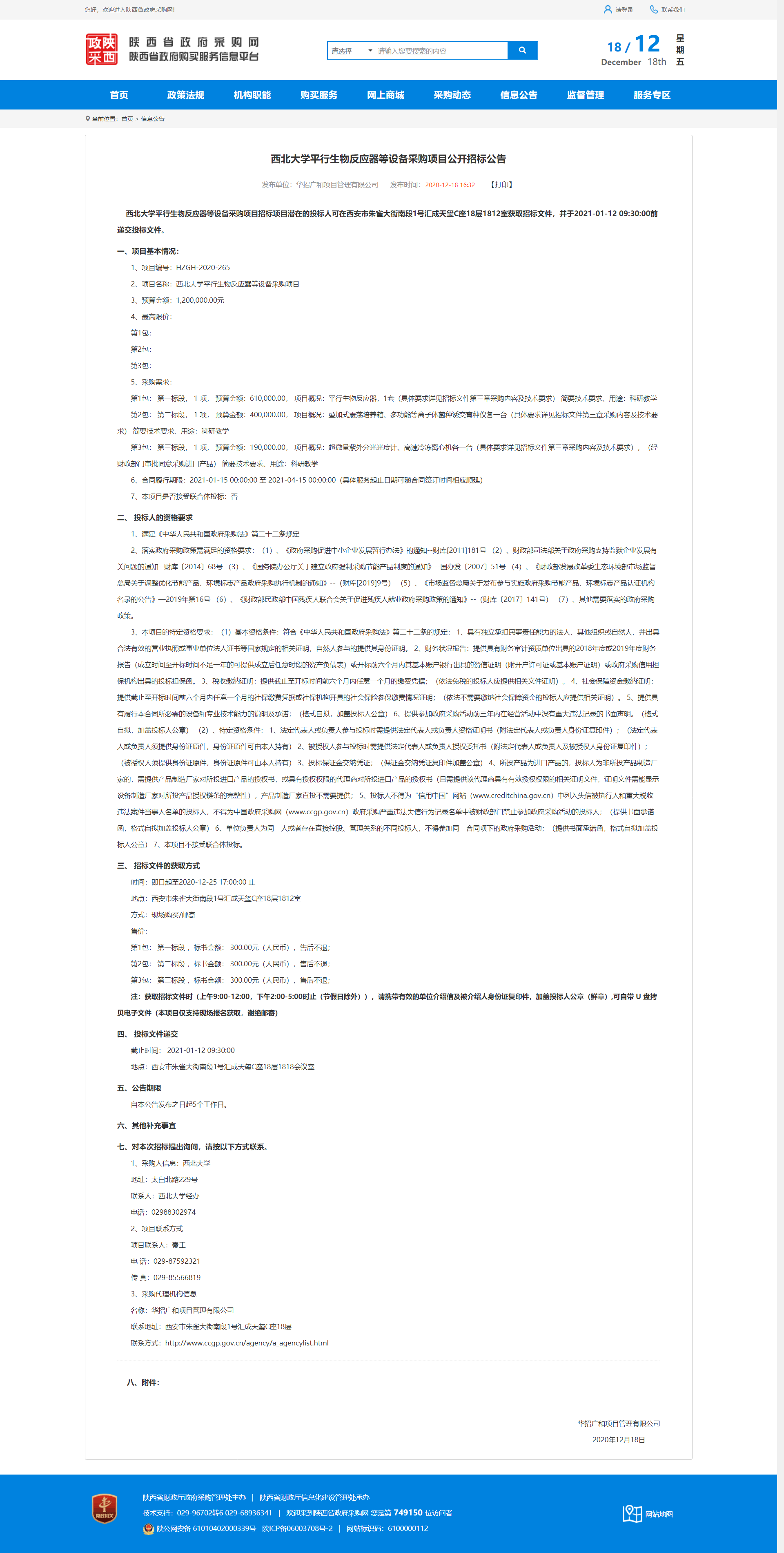 星空app官网平行生物反应器等设备采购项目公开招标公告 作者: 编辑:薛利娟 时间:2020-12-18 原公告地址:http://www.ccgp-shaanxi.gov.cn/notice/noticeDetail.do?noticeguid=8a85be32765f9c9b017674d0094477c2