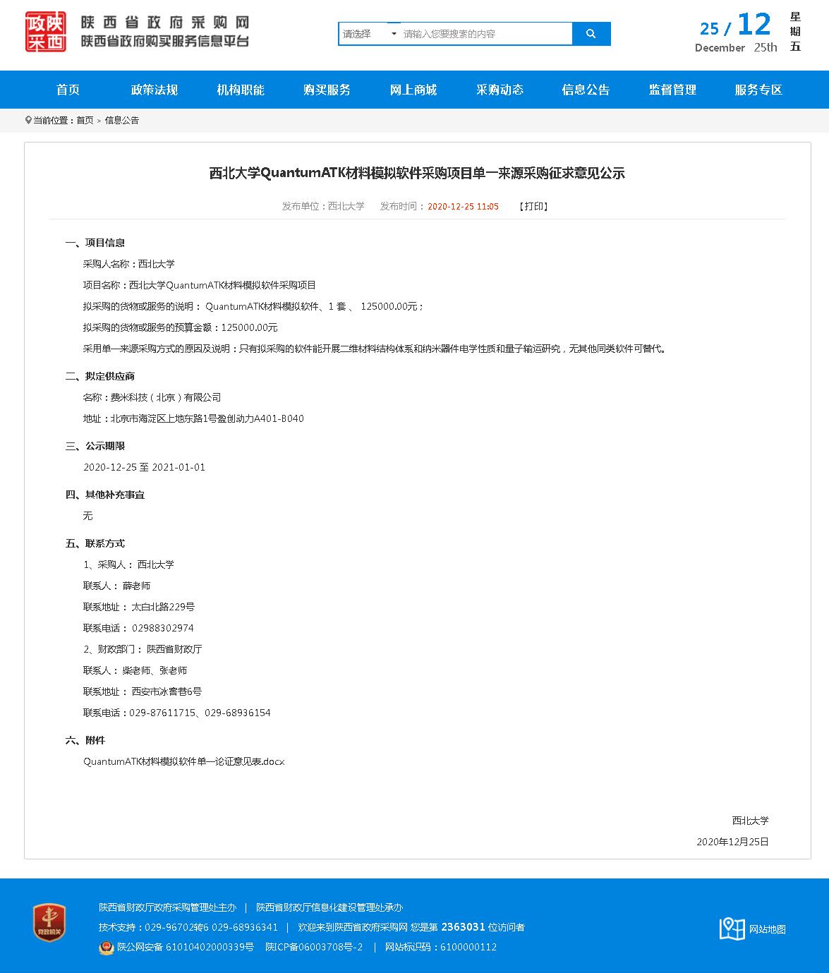 星空app官网QuantumATK材料模拟软件采购项目单一来源采购征求意见公示