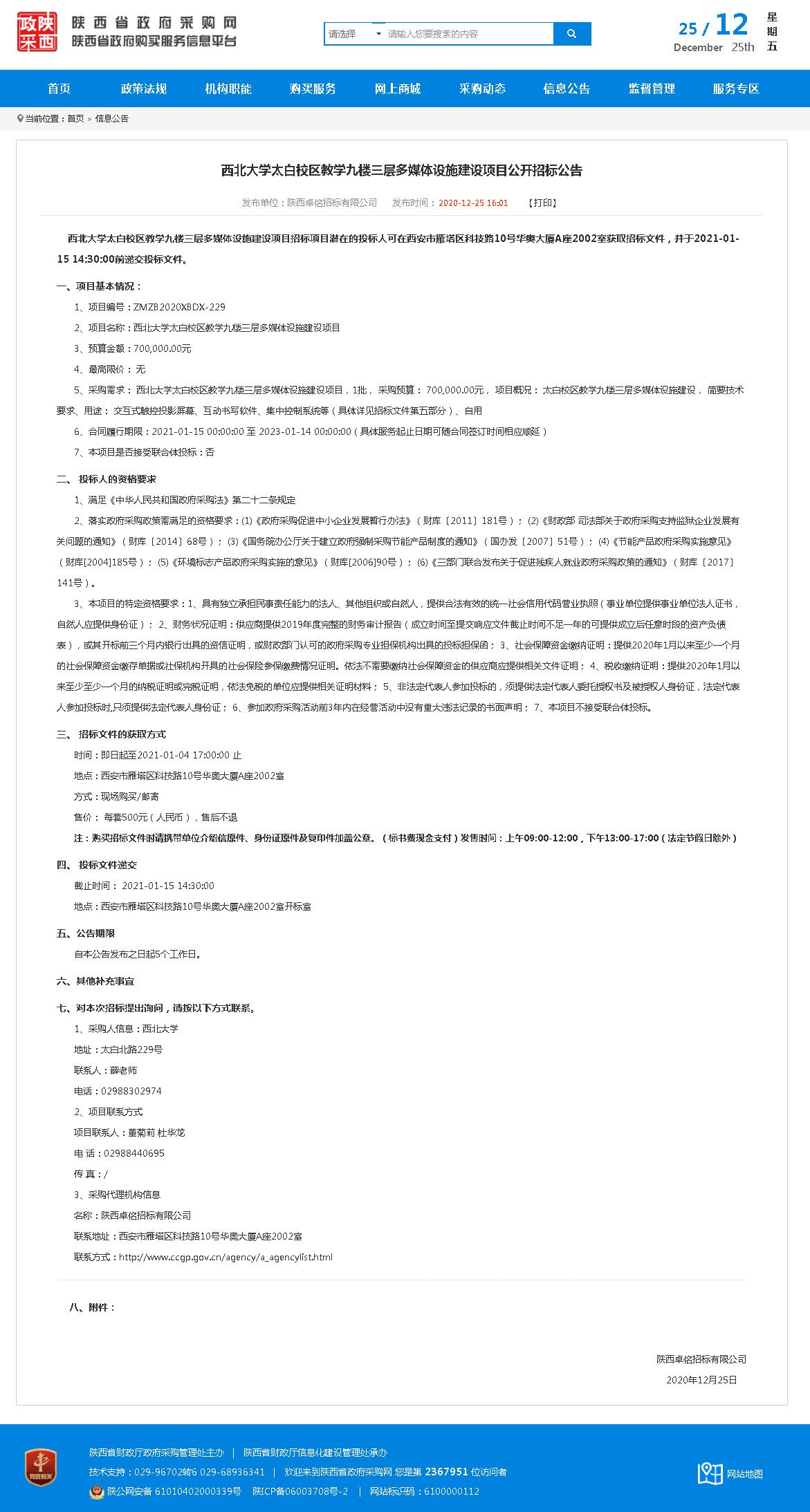 星空app官网太白校区教学九楼三层多媒体设施建设项目公开招标公告