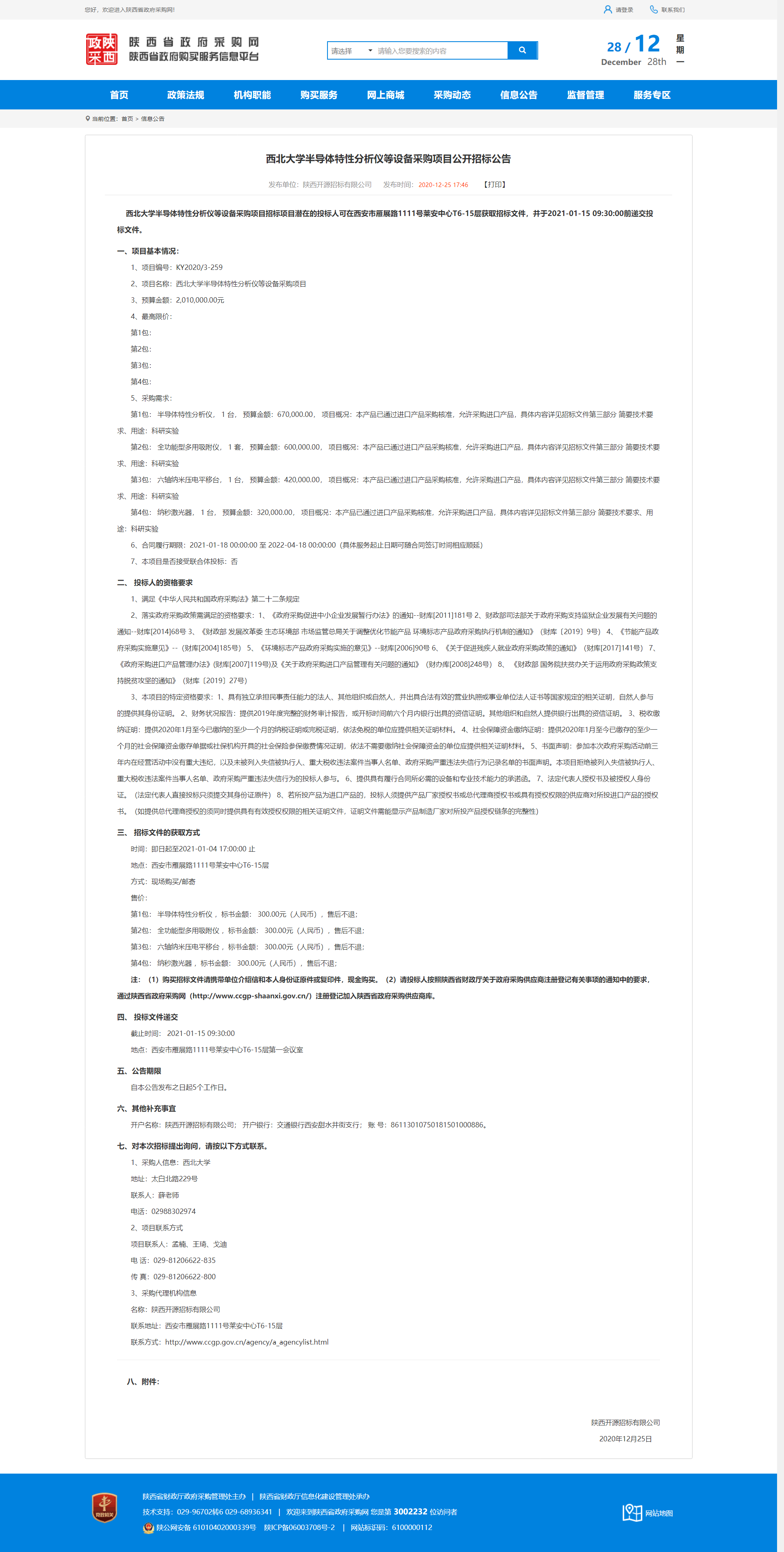 星空app官网半导体特性分析仪等设备采购项目公开招标公告 作者: 编辑:薛利娟 时间:2020-12-28 原公告链接:http://www.ccgp-shaanxi.gov.cn/notice/noticeDetail.do?noticeguid=8a85be34769784fa0176994262042b99