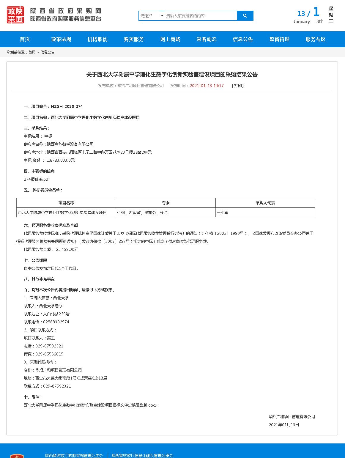 关于星空app官网附属中学理化生数字化创新实验室建设项目的采购结果公告