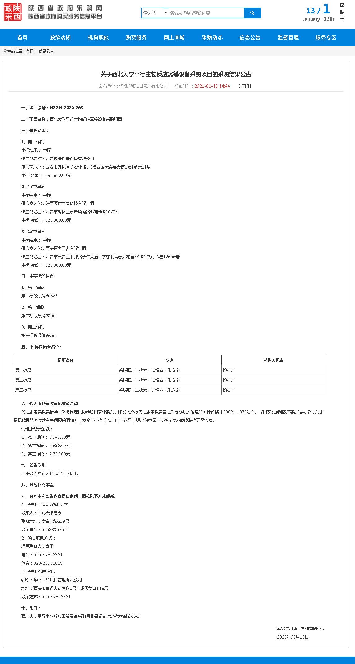 关于星空app官网平行生物反应器等设备采购项目的采购结果公告