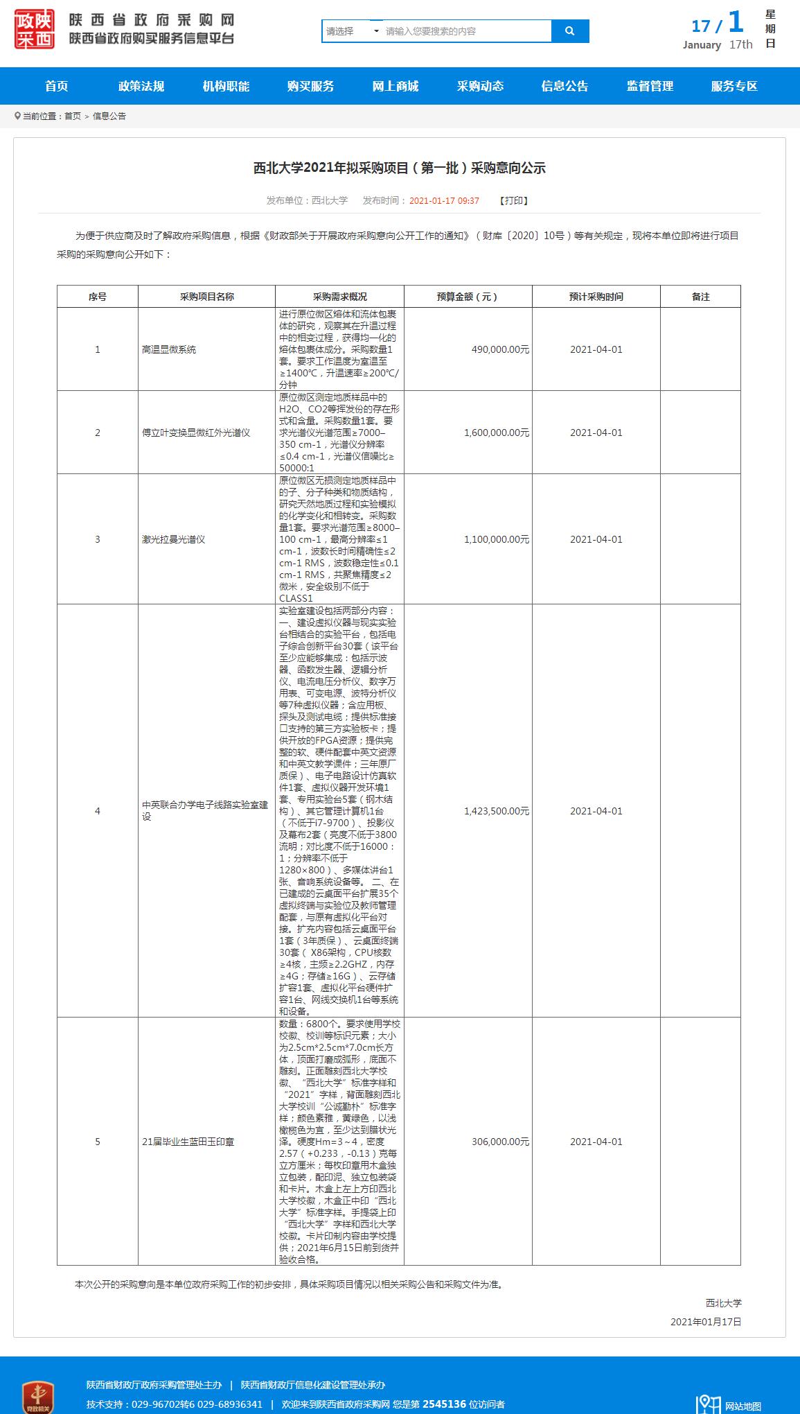 星空app官网2021年拟采购项目(第一批)采购意向公示
