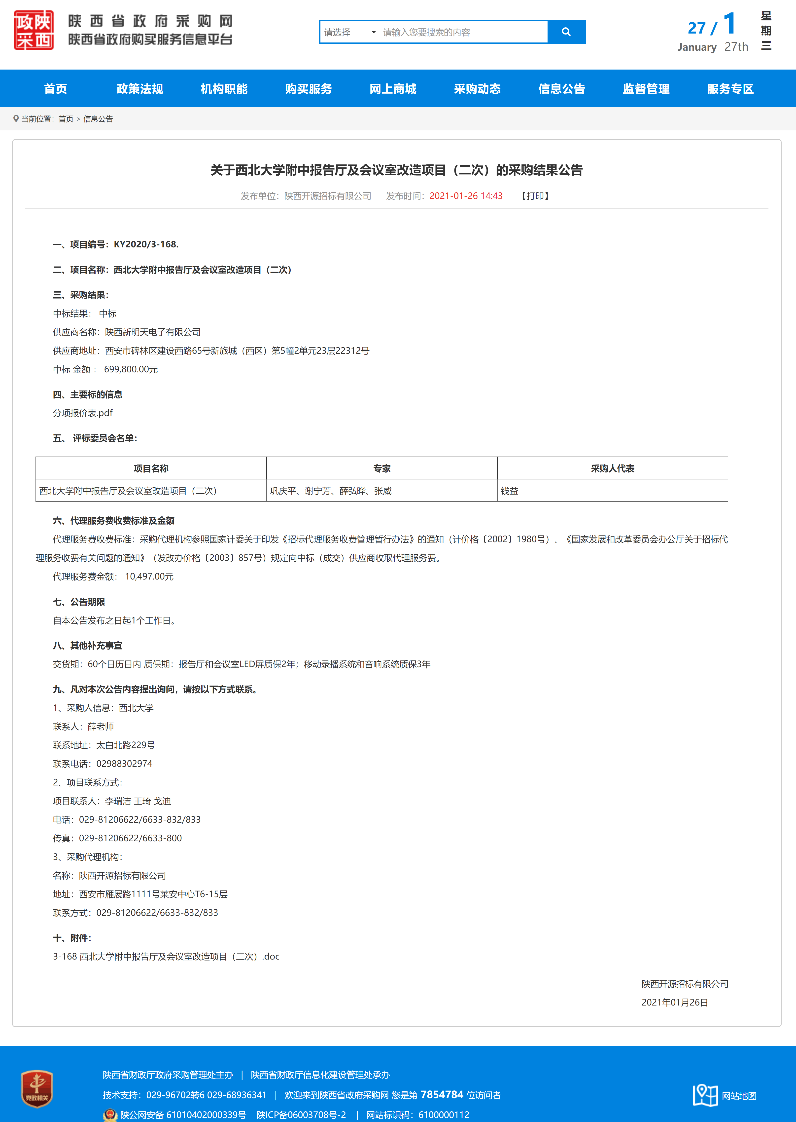 星空app官网附中报告厅及会议室改造项目(二次)的采购结果公告