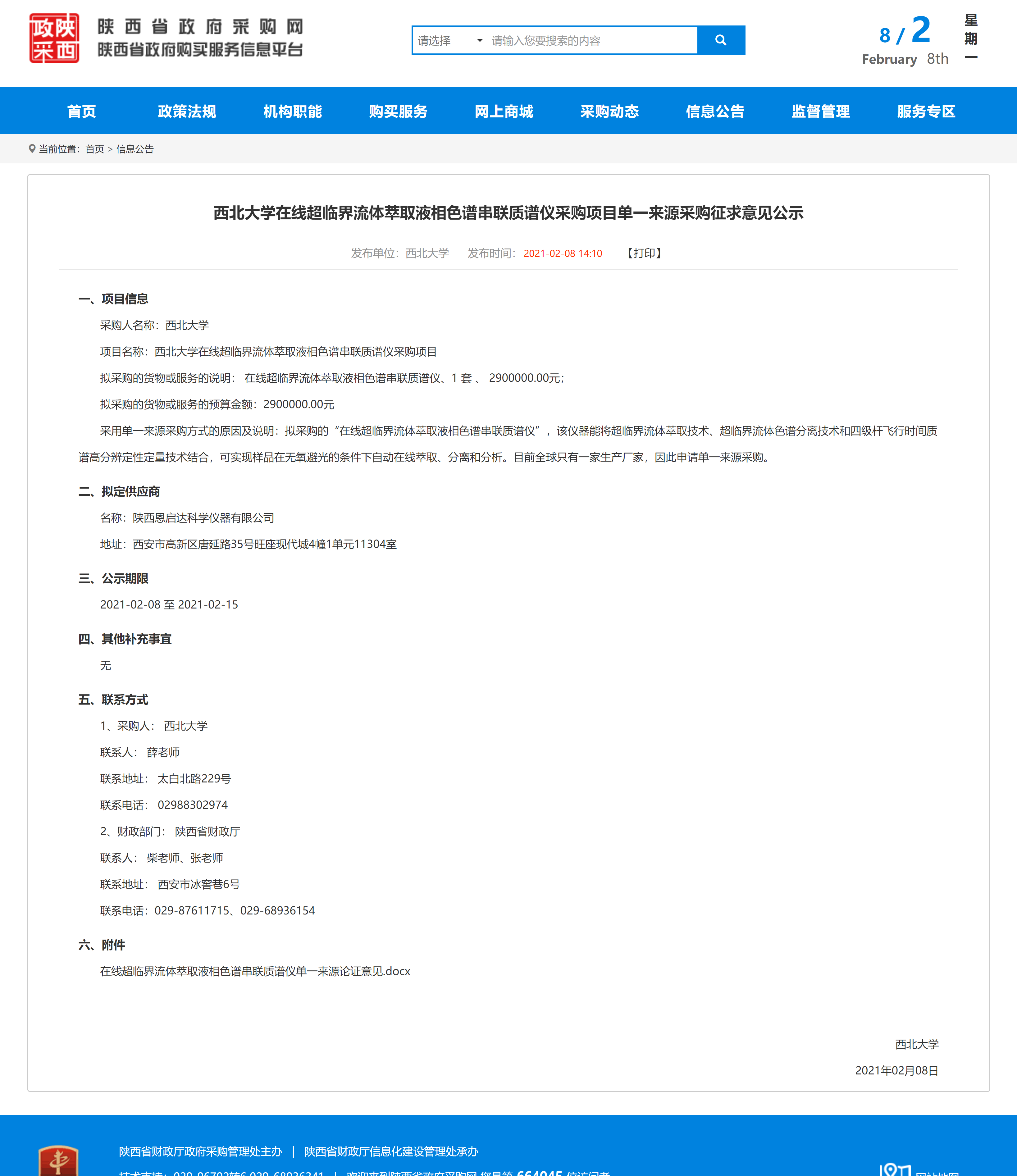 星空app官网在线超临界流体萃取液相色谱串联质谱仪采购项目单一来源采购征求意见公示