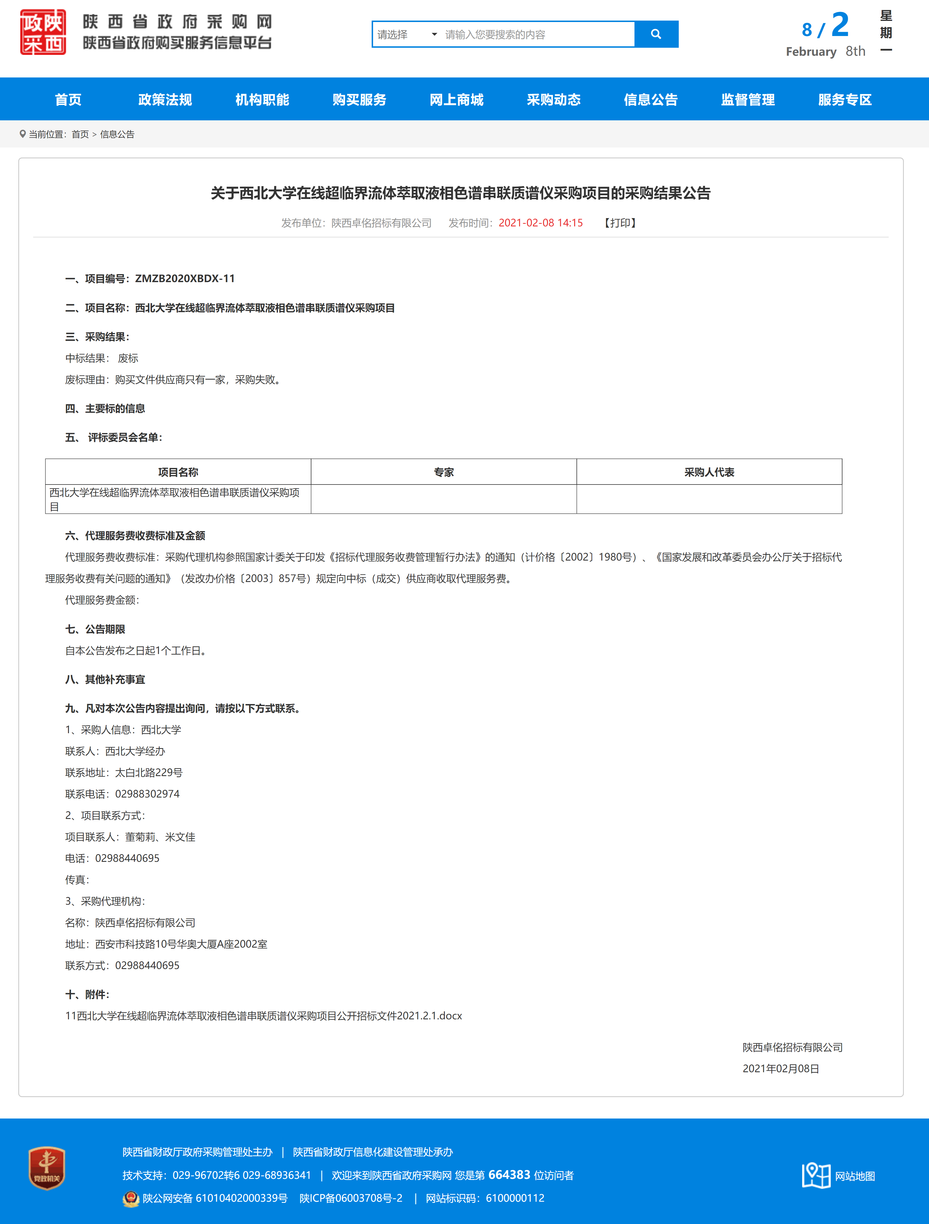 星空app官网在线超临界流体萃取液相色谱串联质谱仪采购项目单一来源采购征求意见公示