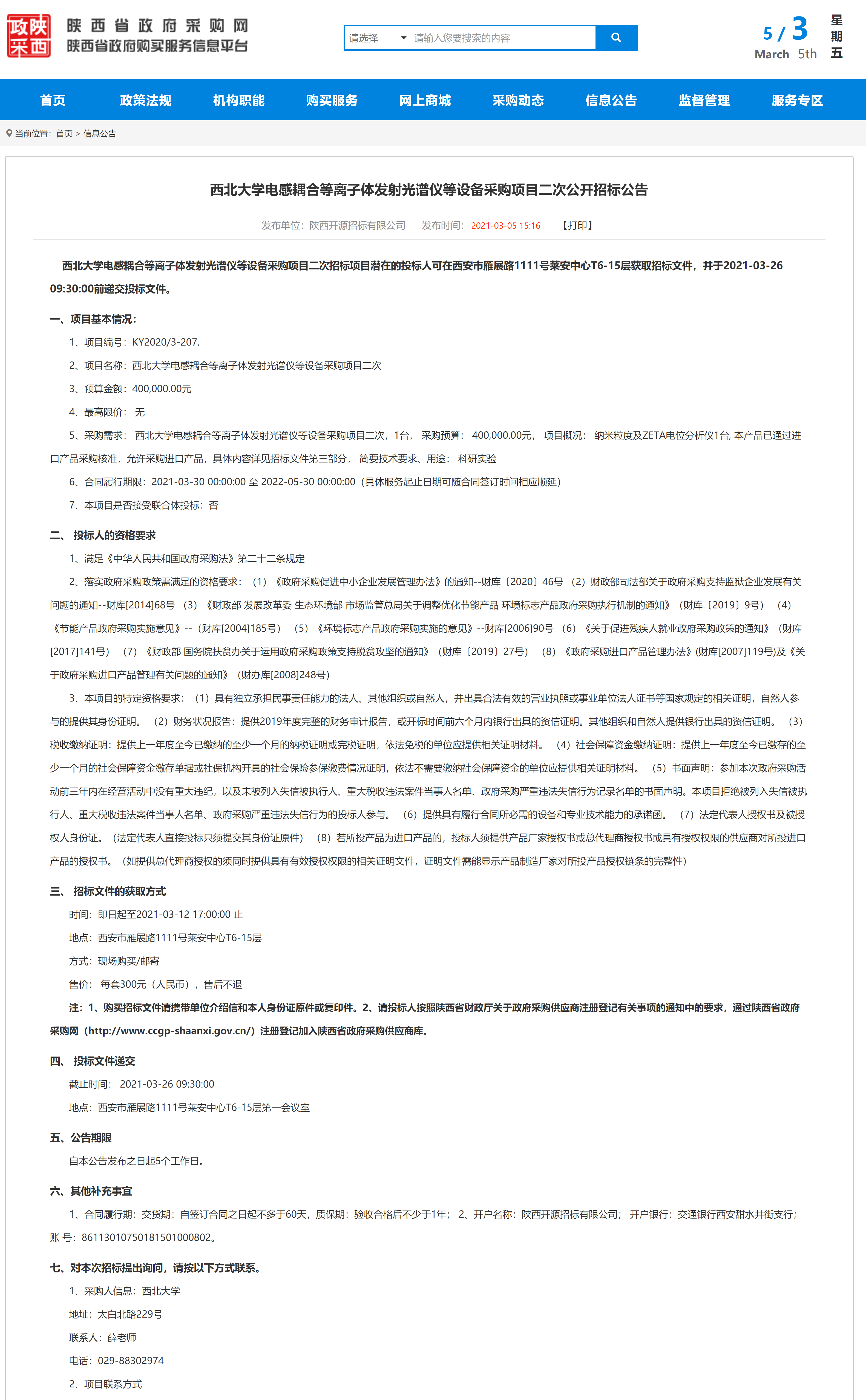 星空app官网电感耦合等离子体发射光谱仪等设备采购项目二次公开招标公告