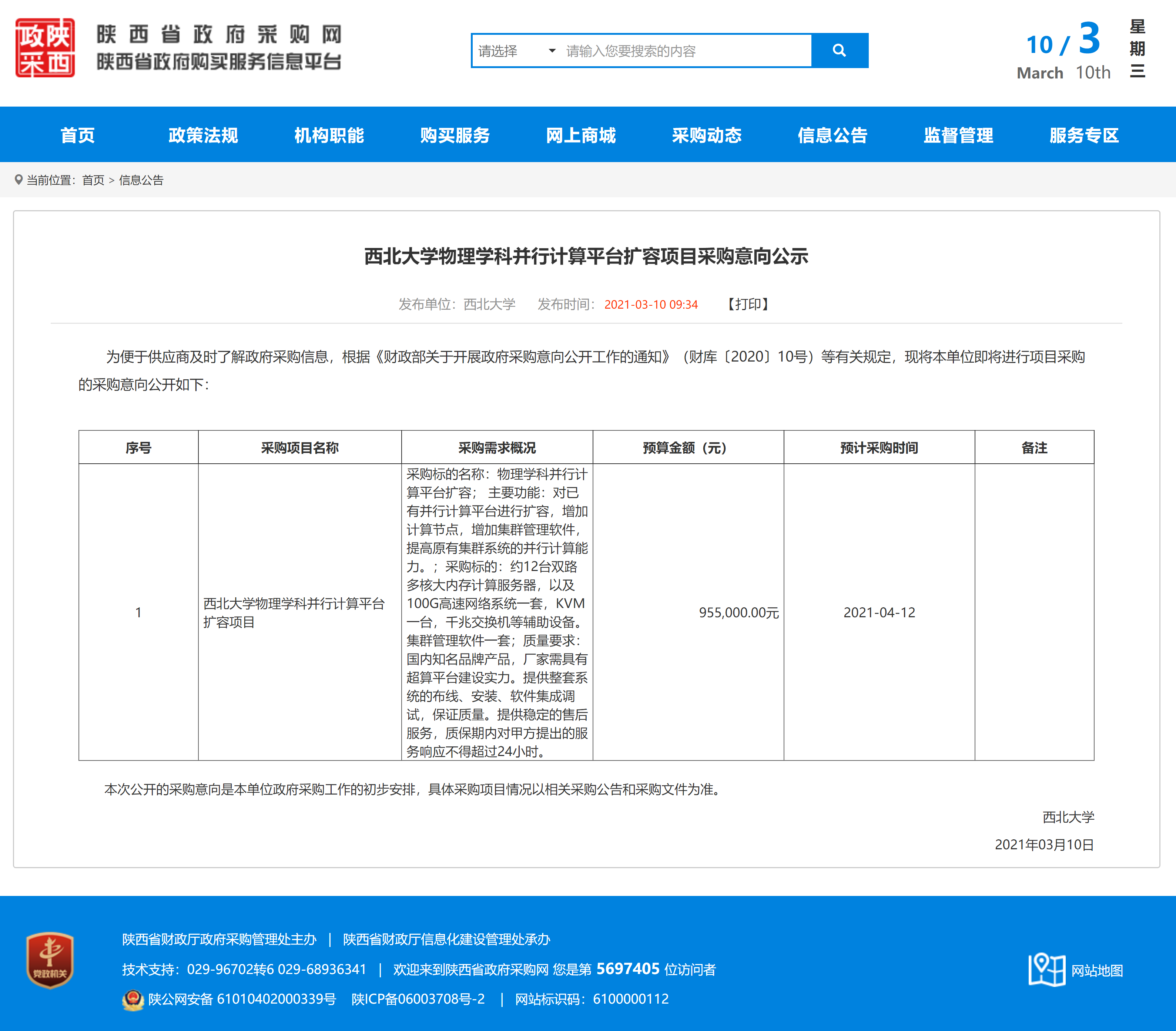 星空app官网物理学科并行计算平台扩容项目采购意向公示
