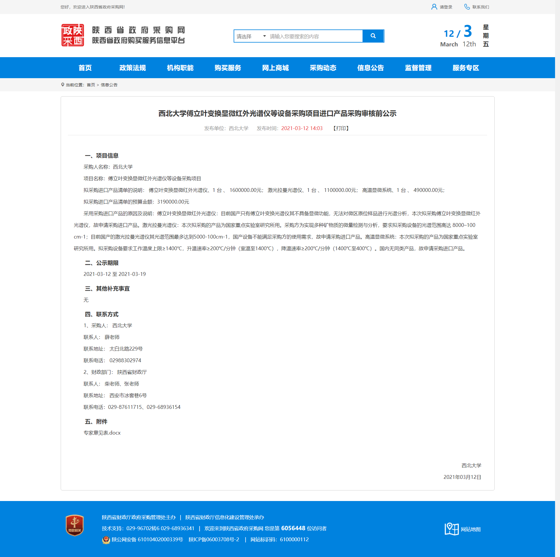 星空app官网傅立叶变换显微红外光谱仪等设备采购项目进口产品采购审核前公示 作者: 编辑:薛利娟 时间:2021-03-12 原公告地址:http://www.ccgp-shaanxi.gov.cn/notice/noticeDetail.do?noticeguid=8a85be3377b2eca3017823fb30ad533f