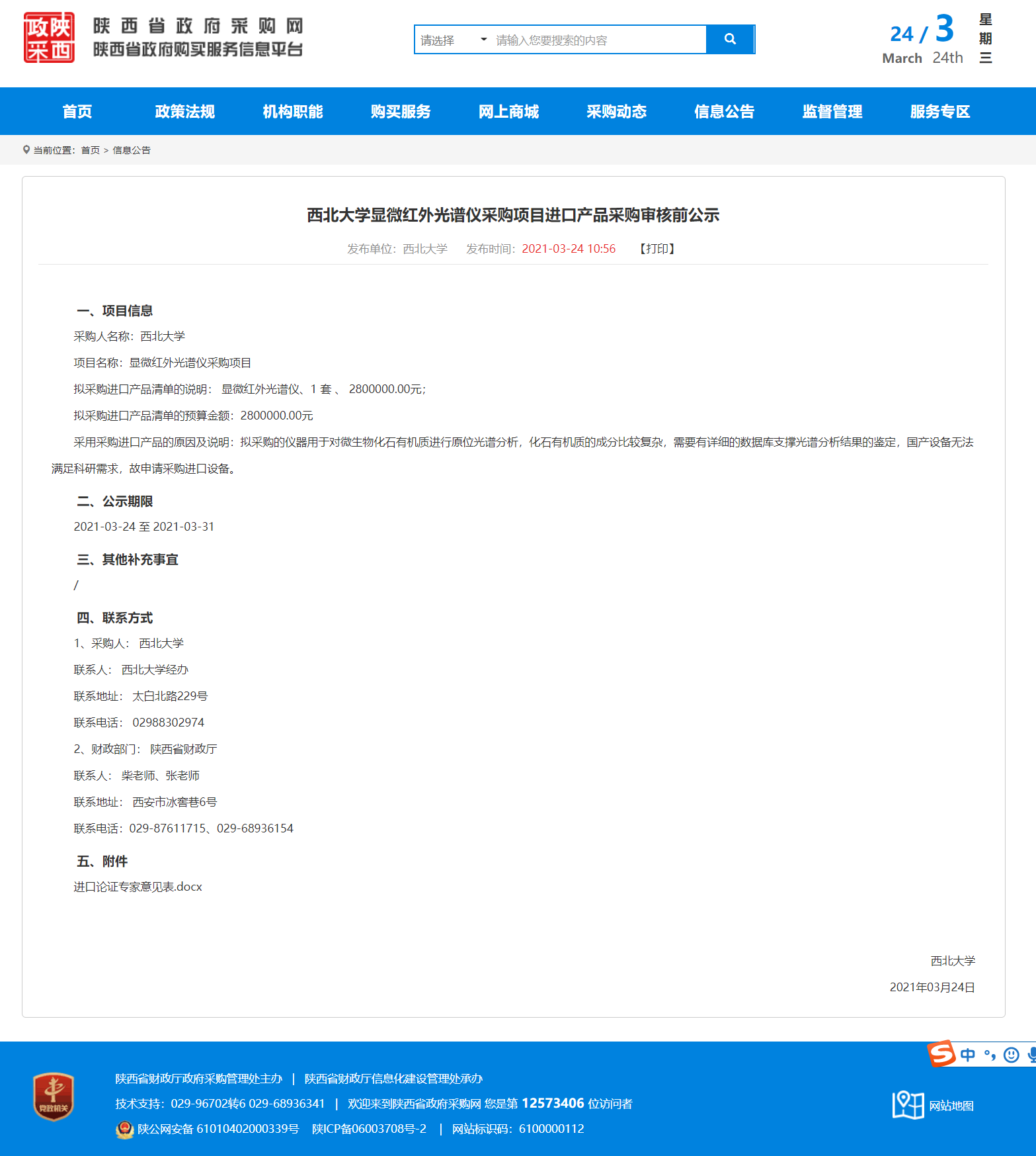 星空app官网显微红外光谱仪采购项目进口产品采购审核前公示