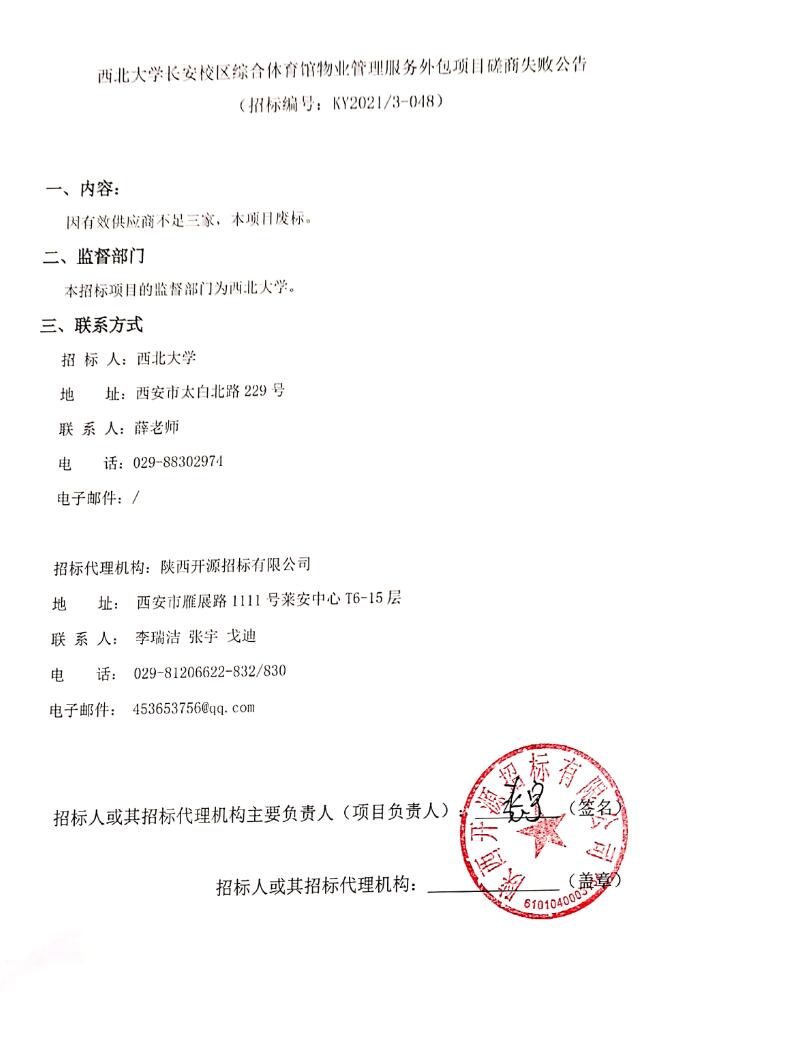 星空app官网长安校区综合体育馆物业管理服务外包项目磋商失败公告