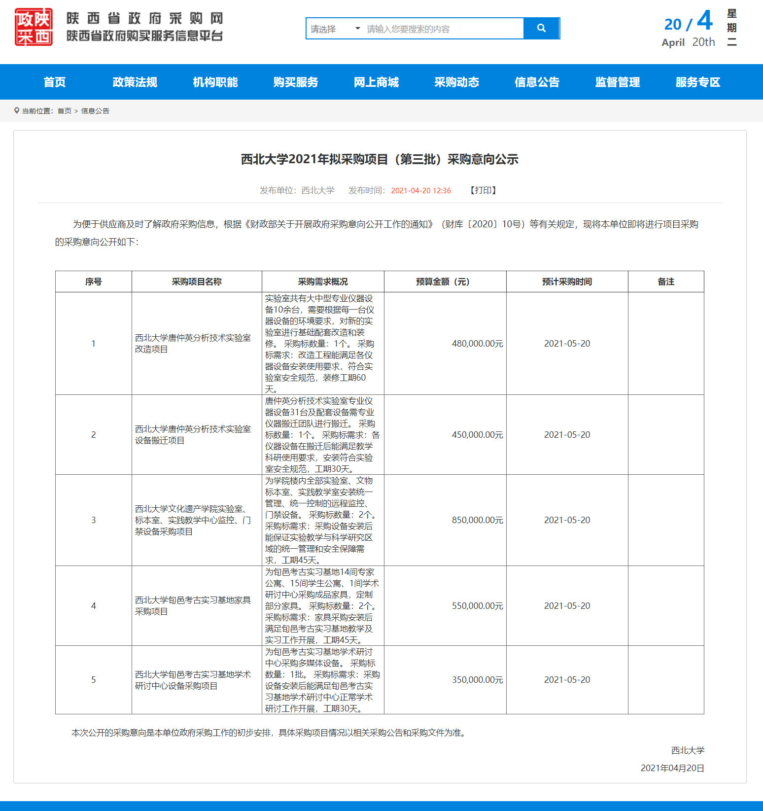 星空app官网2021年拟采购项目(第三批)采购意向公示