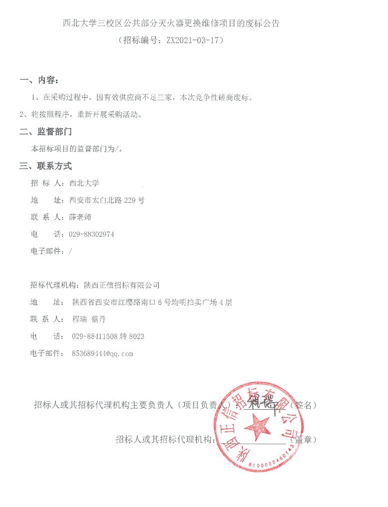 星空app官网三校区公共部分灭火器更换维修项目的废标公告